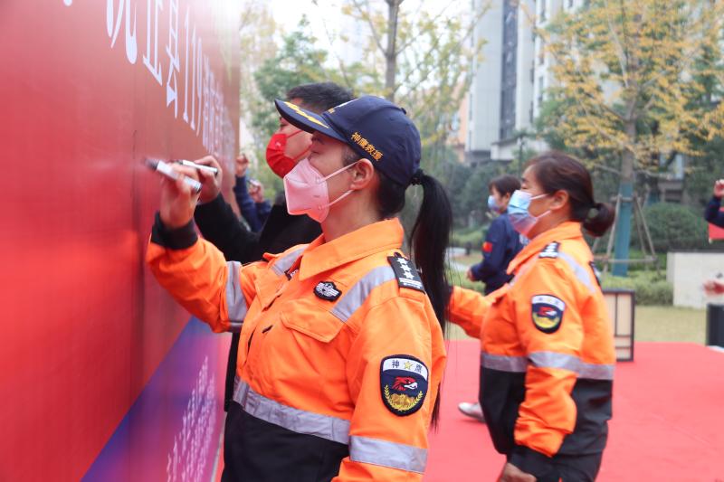 啟動儀式上,社區(qū)居民、民間救援人員等在宣傳墻上簽字,沈丘縣相關領導還為消防大隊聘任的4名消防宣傳形象大使頒發(fā)了聘任證書。