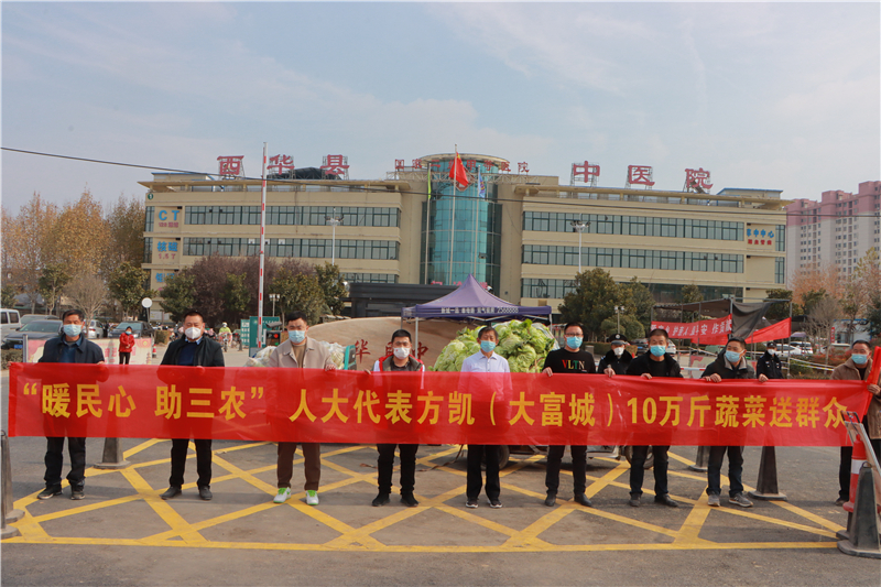 近日,方凱了解到西華縣黃橋鄉(xiāng)菜農(nóng)蔬菜滯銷(xiāo)的問(wèn)題,便立即到現(xiàn)場(chǎng)察看,當(dāng)即決定幫助菜農(nóng)解決蔬菜滯銷(xiāo)難題,購(gòu)買(mǎi)10萬(wàn)斤蔬菜,并將這些蔬菜捐贈(zèng)給縣人民醫(yī)院、中醫(yī)院、敬老院等單位。