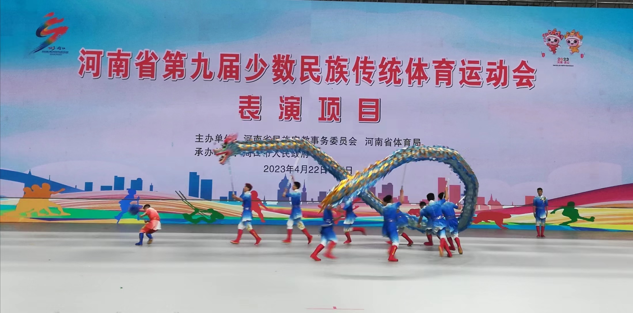 4月24日下午,河南省第九屆少數(shù)民族傳統(tǒng)體育運(yùn)動(dòng)會(huì)表演項(xiàng)目比賽在周口市體育館完美收官。本屆運(yùn)動(dòng)會(huì)共有14個(gè)表演項(xiàng)目獲一等獎(jiǎng)。