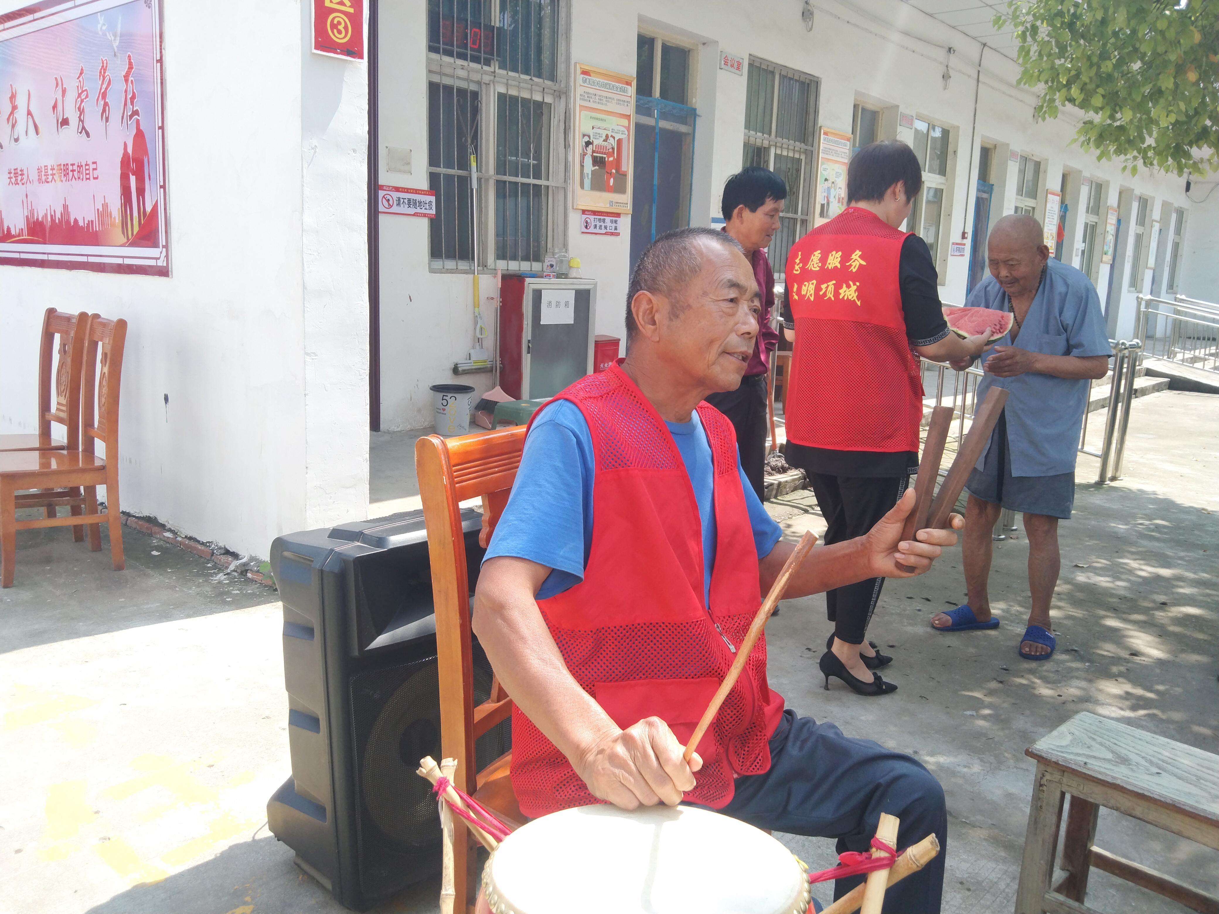 端午節(jié)將至,6月20日上午,項城市賈嶺鎮(zhèn)新時代文明實踐所金雞嶺宣講團志愿者走進該鎮(zhèn)敬老院,為老人們送去粽子、西瓜、糕點等愛心物品,并為老人們表演大鼓書《百善孝為先》等文藝節(jié)目,以此表達對老年人的關愛之情。