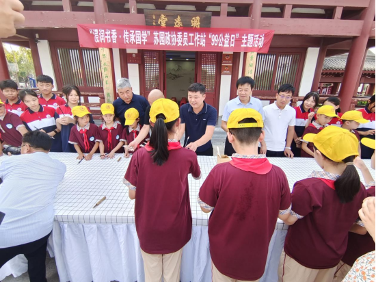 本次活動(dòng),特邀劉氏毛筆制作技藝第六十七代傳承人劉永杰現(xiàn)場(chǎng)講解和演繹毛筆的制作過(guò)程,40多名中小學(xué)生親身體驗(yàn),親手制作,更深一步了解毛筆的制作工序,讓毛筆制作技藝不斷發(fā)揚(yáng)光大,讓非遺文化不斷的傳承下去,激勵(lì)學(xué)生們寫(xiě)好中國(guó)字,做好中國(guó)人。委員們和學(xué)子們?cè)诜沁z傳承人的指導(dǎo)下,共同制作“蘇園狀元筆”。