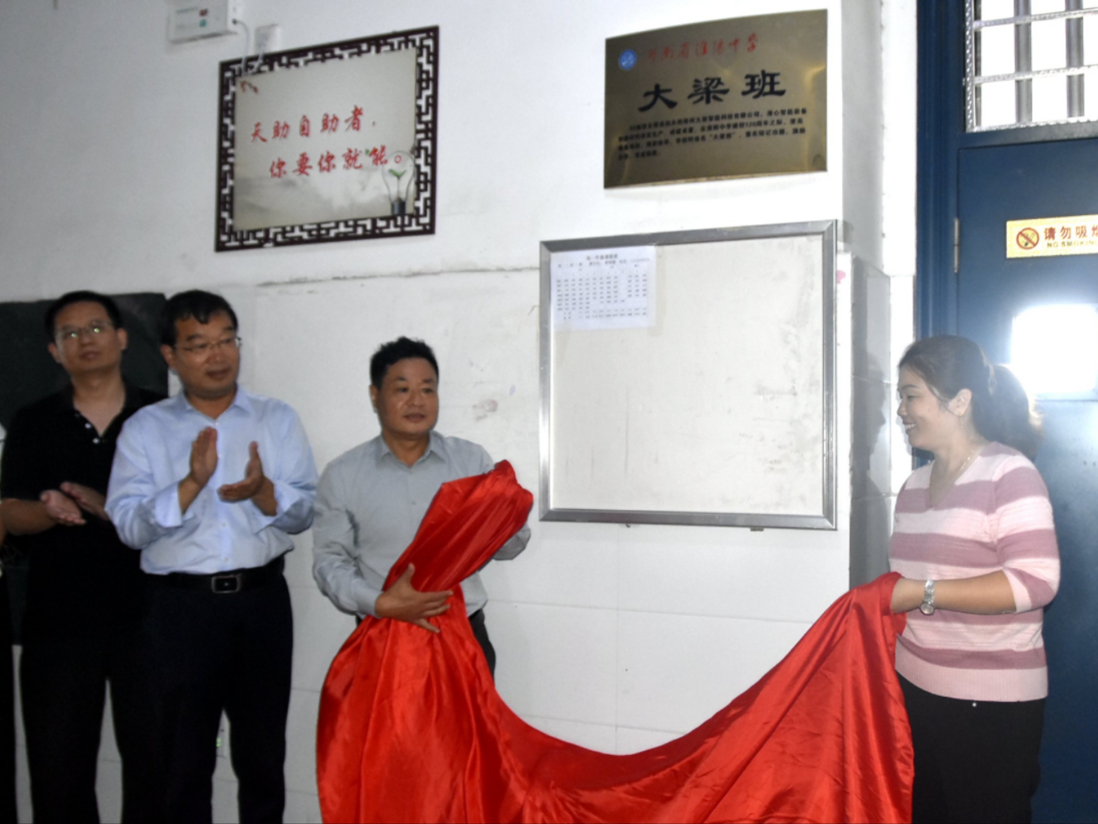 最后,梁亮和班主任程艷麗老師一起為“大梁班”揭幕,與會人員和班級全體同學(xué)見證了這一歷史時刻。