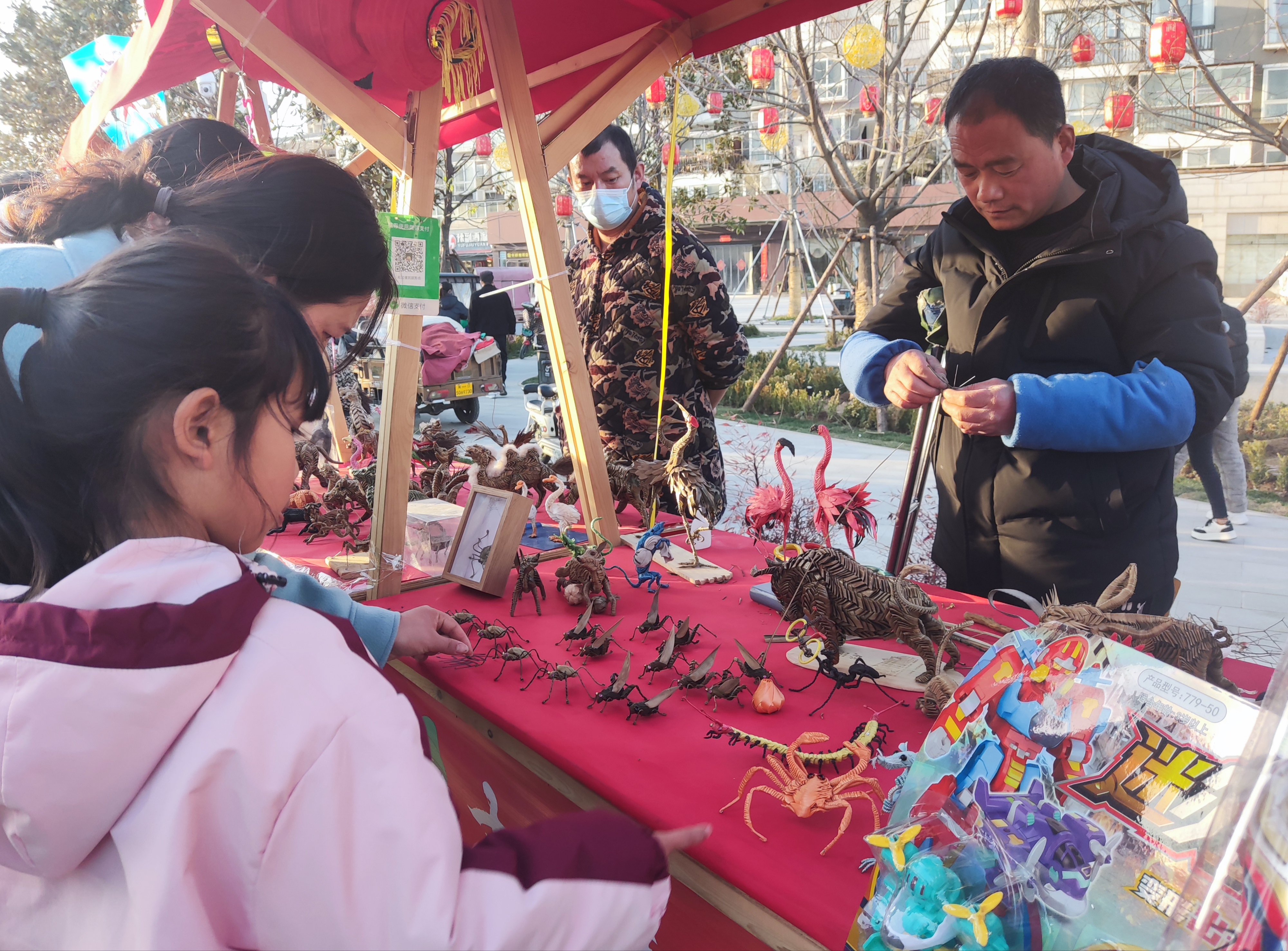 棕編、草編、面塑、糖人、泥泥狗、布老虎……“古風(fēng)集市”上,千姿百態(tài)的民俗作品,烘托出充滿(mǎn)文化氣息的年味兒。