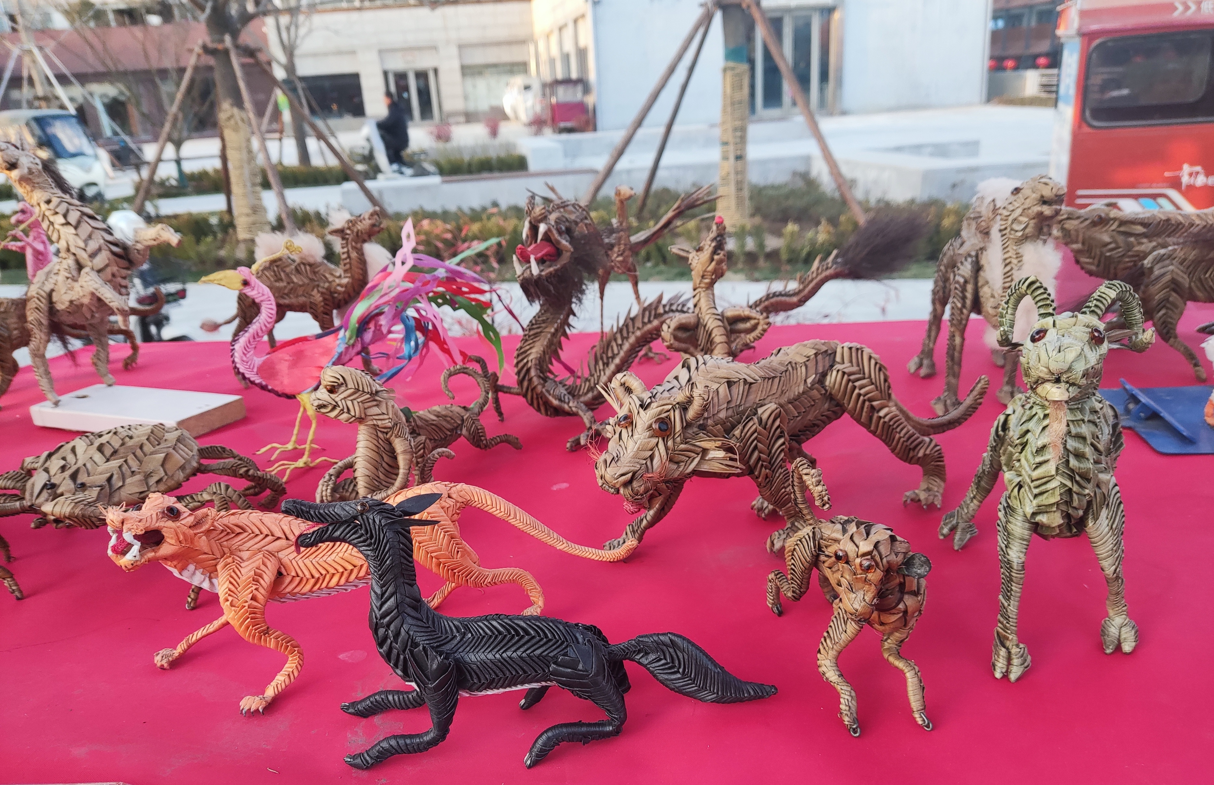 長(zhǎng)龍、螞蚱、山羊、老虎、駱駝……朱洪濤的作品栩栩如生、花樣繁多,讓游客目不暇接。
