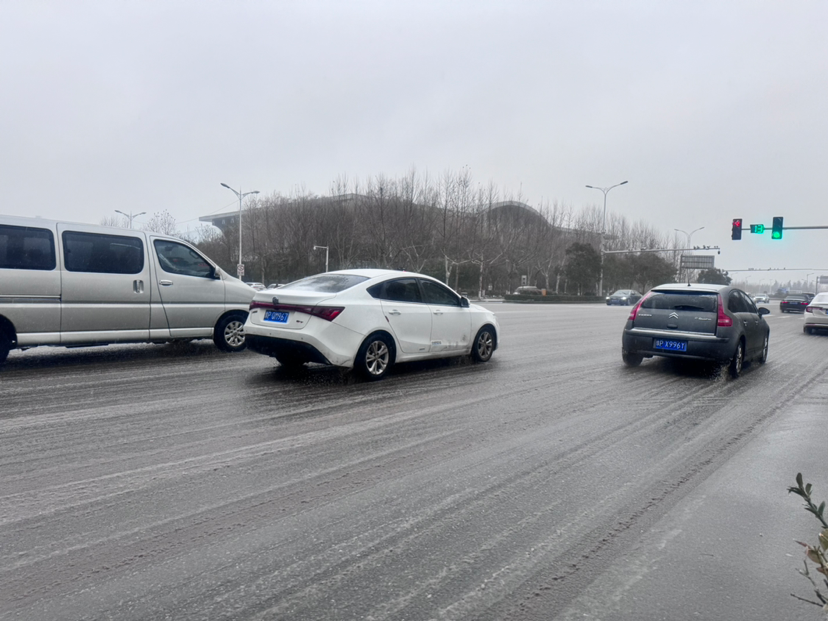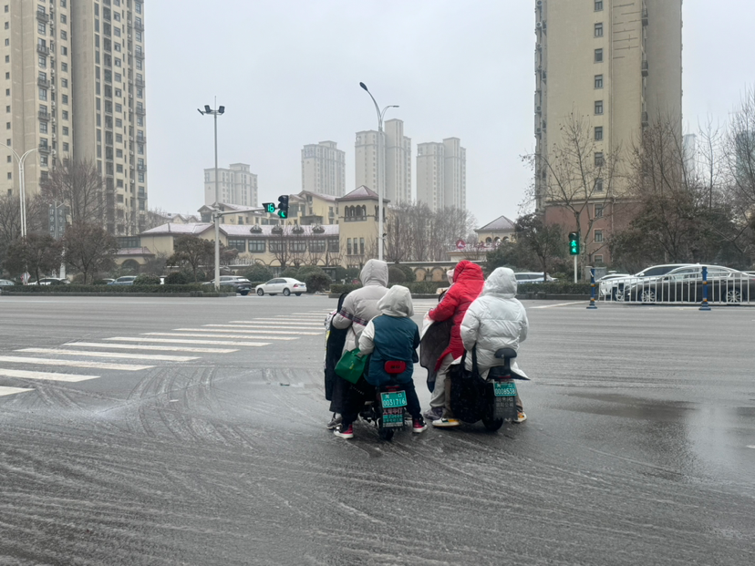記者在周口大道看到,過往車輛紛紛拉開車距、緩慢通行,騎電動車的市民大多戴上了帽子、裹緊了身上的棉衣,過往行人撐著雨傘、頂著寒風(fēng)匆匆趕路。