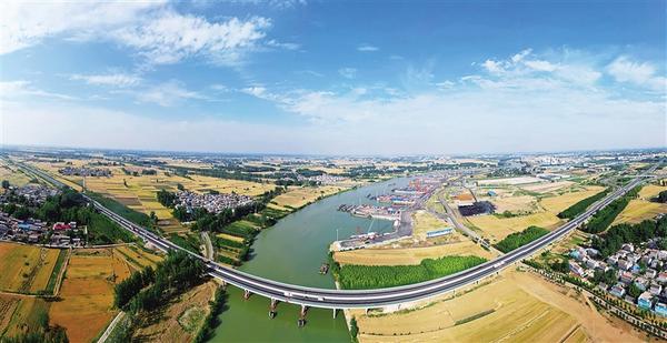 5月27日,周口港中心港區(qū)在碧水、藍天、白云、金色麥浪、秀美村莊的映襯下,顯得十分壯美。近年來,我市利用水陸交通優(yōu)勢,加快構建“鐵公機水”多式聯運體系,努力從“經濟通道”邁向“通道經濟”。