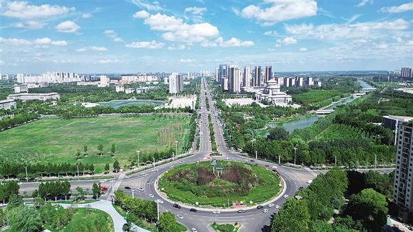 近年來,我市城市建設(shè)取得顯著成效。圖為藍(lán)天白云映襯下的周口市城鄉(xiāng)一體化示范區(qū)。 記者 梁照曾 攝