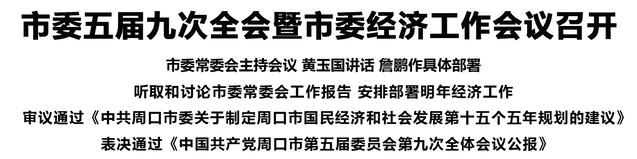 本報(bào)訊 (記者 王艷 李鳳霞 王晨) 12月28日,中國(guó)共產(chǎn)黨周口市第五屆委員會(huì)第九次全體會(huì)議暨市委經(jīng)濟(jì)工作會(huì)議召開(kāi)。
