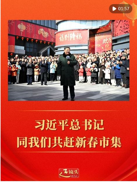 習(xí)近平總書記同人民群眾共趕市集、共迎新春,是年節(jié)里最溫暖的圖景??倳涀叩桨傩罩虚g,送上真摯的新春祝福:“在農(nóng)歷馬年龍馬精神、身體健康、事業(yè)有成、闔家幸福!”