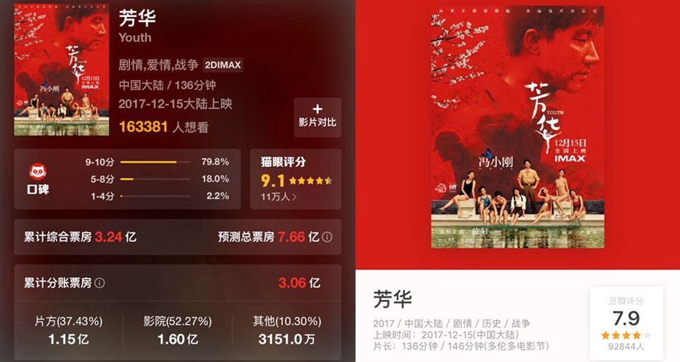 國慶檔因為片子太多,除了《羞羞的鐵拳》遙遙領(lǐng)先外,口碑不錯的《英倫對決》、《追龍》、《縫紉機樂隊》的票房都遭到了擠壓。熱度很高的《空天獵》也一樣。最終,這五部電影的票房分別是20.07億、5.38億、5.75億、4.57億、3.18億?!?a href="http://www.rmltj.com/content/2017-12/18/content_604326.htm" target="_blank" >[詳細]