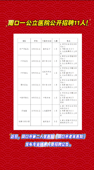 周口一公立醫(yī)院公開招聘11人!