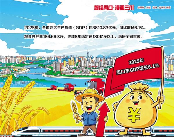 據(jù)周口市統(tǒng)計(jì)局消息,2025年全市地區(qū)生產(chǎn)總值(GDP)達(dá)3810.83億元,同比增長6.1%。