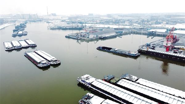 雪落沙潁河,潮涌新征程。1月1日,新年第一天,周口中心港范營作業(yè)區(qū)碼頭上,工人有條不紊地裝卸著各類貨物。河面上,待泊的貨船排起長隊(duì),船民們細(xì)心清理船上的積雪。另有滿載貨物的貨船鳴笛啟航,駛向遠(yuǎn)方。