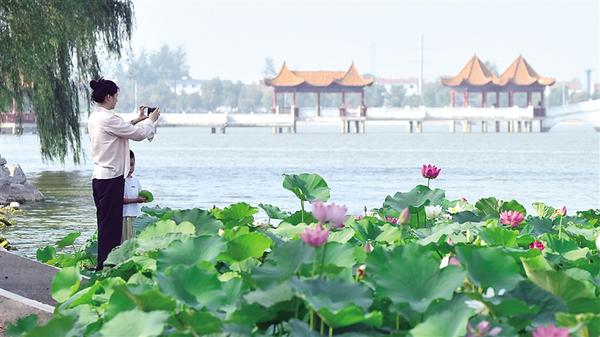 夏天的淮陽(yáng)就像一幅寫(xiě)意畫(huà)卷,在清涼的湖風(fēng)吹拂下徐徐展開(kāi)。登上龍湖邊的六藝閣,遠(yuǎn)處的古城,臥波的大橋,近處的荷花,搖曳的蘆葦,仿古的碼頭,靜泊的游船,歸巢的飛鳥(niǎo)……放眼處,無(wú)不令人陶醉其間。