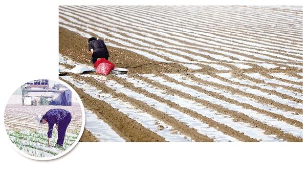 10月14日,淮陽區(qū)瓦房集村的菜農(nóng),抓住連陰轉(zhuǎn)睛的有利時機,搶種大蒜。