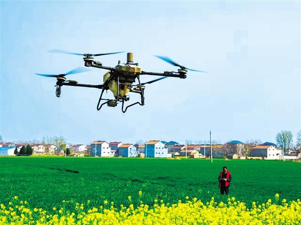 近日,在鹿邑縣玄武鎮(zhèn)解樓行政村的麥田上,一架無人機正在開展精準飛防作業(yè)。時值小麥抽穗期,當(dāng)?shù)剞r(nóng)業(yè)部門組織專業(yè)化防治隊伍,采用“一噴三防”技術(shù),通過無人機對小麥實施病蟲害防治、葉面肥噴施等綜合管理。