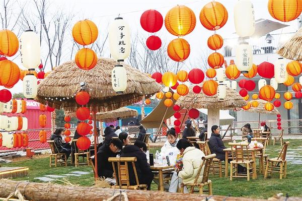 近日,周口首屆永福新春游園會在引黃調蓄湖畔啟動,吸引不少群眾前去看文藝演出、逛文創(chuàng)集市、嘗傳統(tǒng)小吃。圖一為群眾在露營地休息。圖二為群眾乘船游玩。