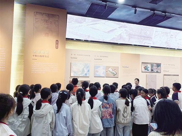 5月23日,學(xué)生在平糧臺古城遺址博物館內(nèi)參觀。當(dāng)日,淮陽一小學(xué)師生走進(jìn)平糧臺古城遺址,走進(jìn)這片承載著幾千年文明的土地,參加了一場別開生面的“行走的課堂——考古研學(xué)”活動。