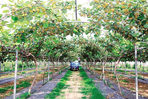 “每枝留果4—5個,間距15厘米,弱枝果、畸形果必須摘除!科學(xué)疏果能讓養(yǎng)分集中,糖度提升2度以上,精品果率超80%?!笔⑾牡泥惓强h城郊鄉(xiāng)王樓村,連片獼猴桃架下碩果累累,陽光穿透藤蔓在地面投下斑駁光影,村民羅明同正在按照科技特派員的要求疏果、定果。