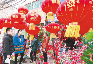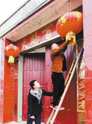 ?、儋N對聯,掛燈籠,喜迎新春。 (記者 王映 攝)