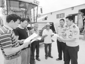 昨日,商水縣舒莊鄉(xiāng)派出所民警正在杜店村遠豐農機專業(yè)合作社向農機手宣傳“三夏”生產安全知識。為確?!叭摹鄙a安全,舒莊鄉(xiāng)派出所印發(fā)2000份《三夏安全生產知識宣傳單》,組織民警深入田間地頭和農家小院向農機手們面對面進行安全生產宣傳。(喬連軍 攝)
