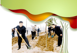 市委書記徐光等市領(lǐng)導(dǎo)在川匯區(qū)義務(wù)植樹。記者 王映攝